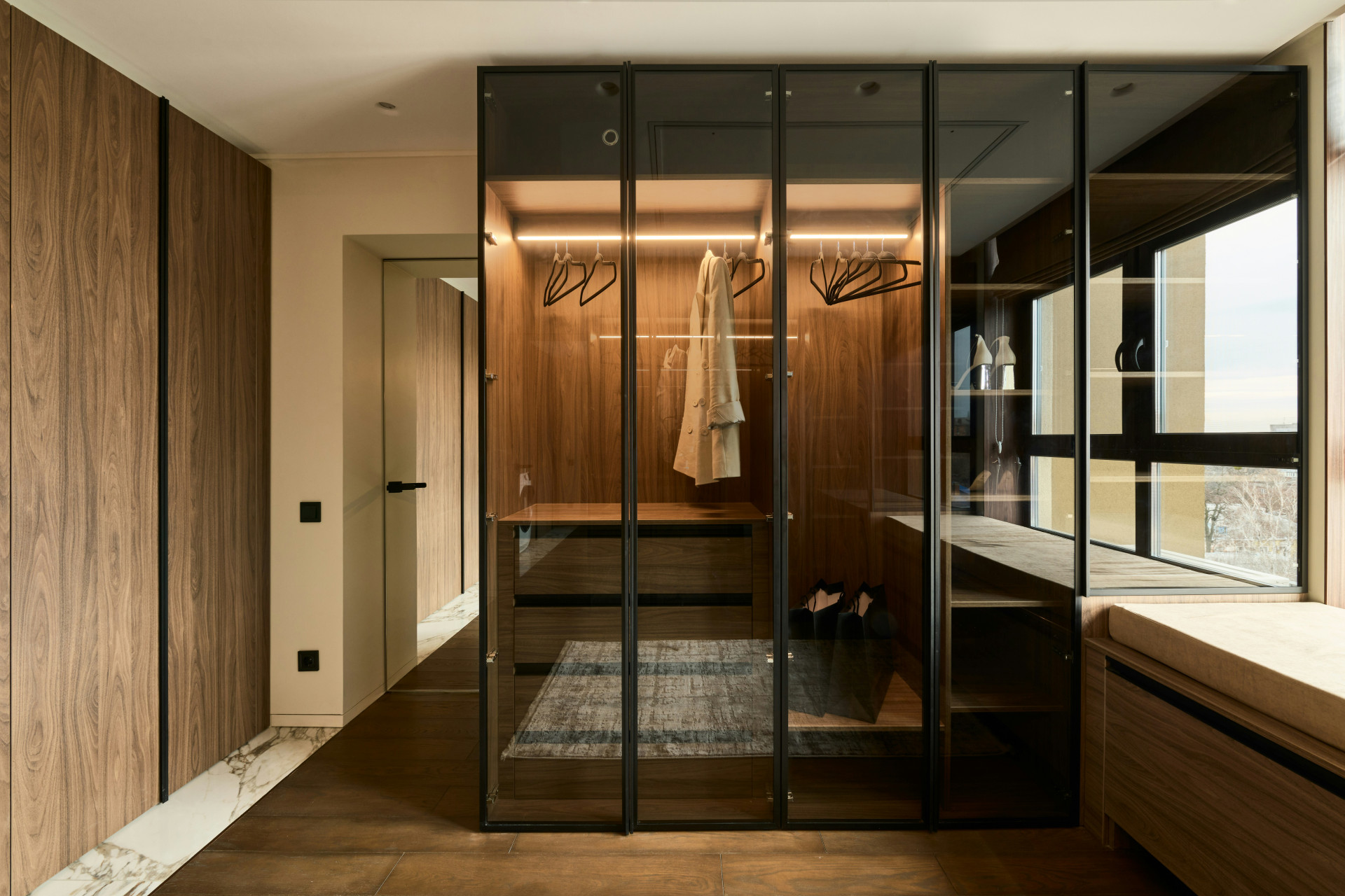 Garderoben er velegnet til større rum, hvor der er behov for en kombination af funktionalitet og et rent, moderne udtryk.